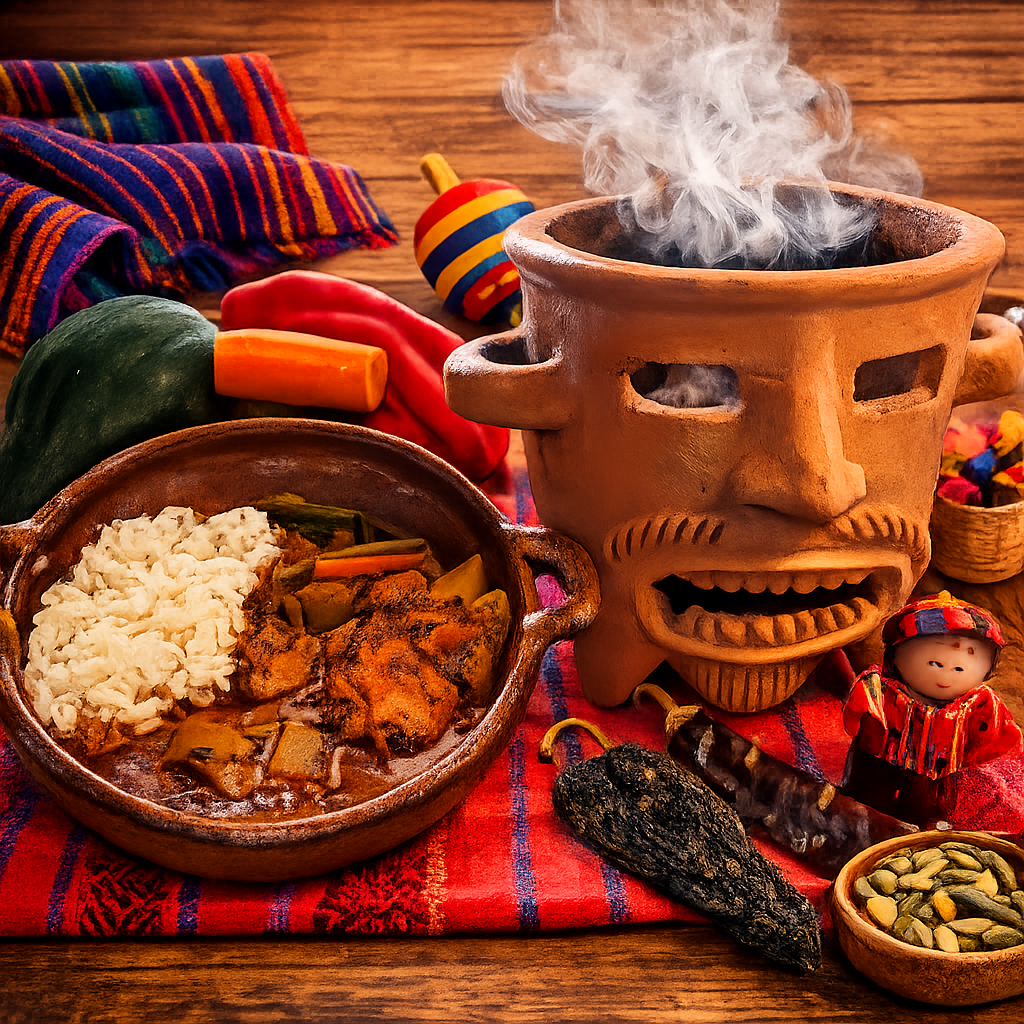 Pre-Hispanic dish from the cloudy mountains region of Guatemala. Based on seeds and tomatoes with samat leaves all wrapped in plantain leaves